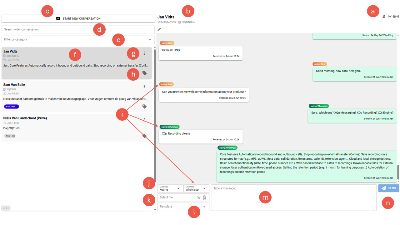 The XQu Messaging interface in detail:
