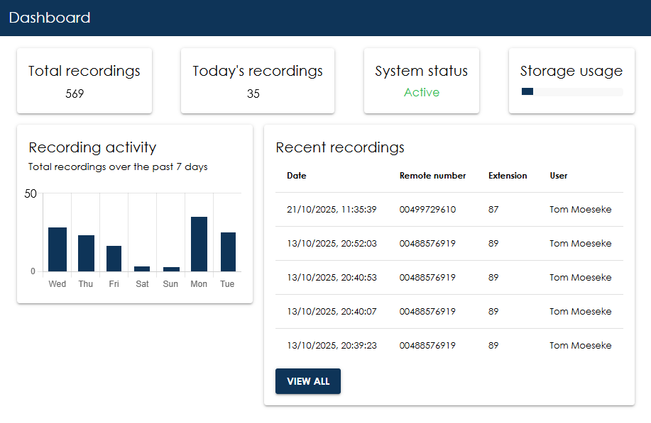 This page displays the most recent recordings by default, but also allows you to search for specific recordings. This is done by using filters.