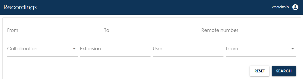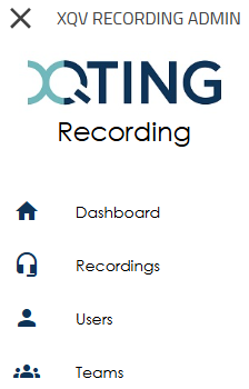 When you are logged into innovaphone as an XQv Recording administrator (see previous chapter) and click on the XQv Recording app icon, the administrator UI opens with the following main menu: