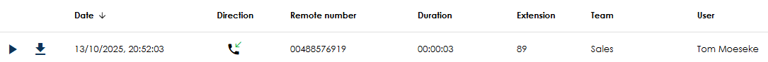 Call direction: select a direction from the drop-down (incoming or outgoing)