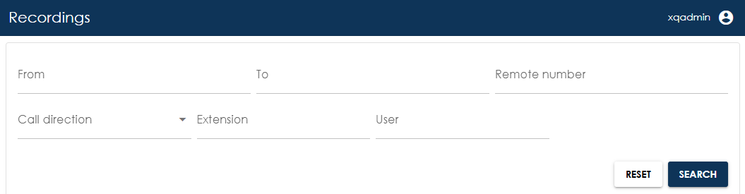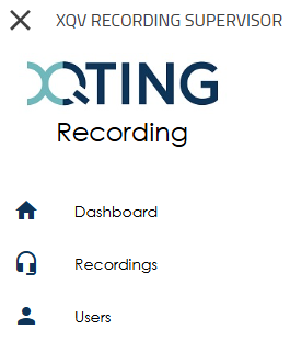When you are logged into innovaphone as an XQv Recording supervisor (see first chapter) and click on the XQv Recording app icon, the supervisor UI opens with the following main menu: