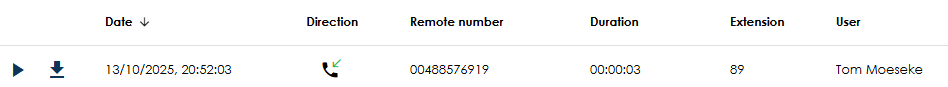 Call direction: select a direction from the drop-down (incoming or outgoing)